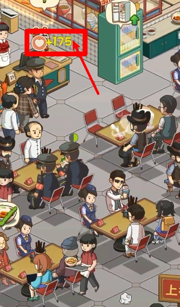 1. 顾客满意度提升机制:当顾客拥有良好的用餐体验时,界面会掉落心形图标并同步显示对应数值,以此直观呈现顾客对菜品及服务的满意程度正逐步提升。