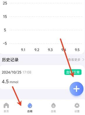 1、用户需先进入首页,然后在页面最下方找到“血糖”和“血压”这两个选项。