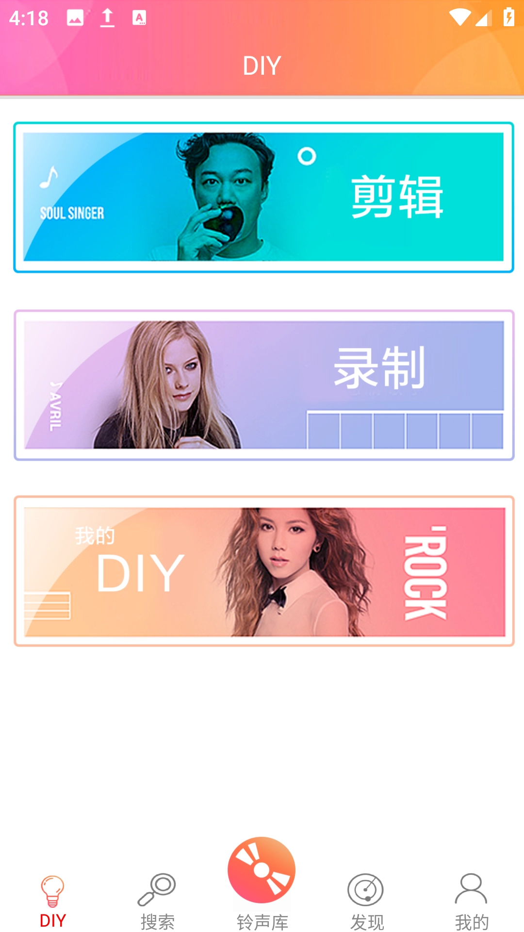 2、进入DIY主界面,点击“剪辑”图标,浏览推荐或选择心仪的本地音乐。