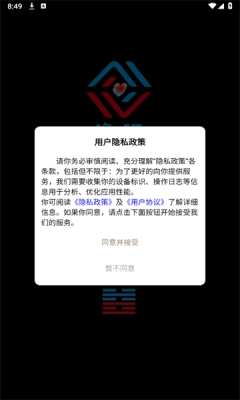 1、软件安装完成后打开,会弹出同意相关条款的提示,点击同意即可进入注册界面;