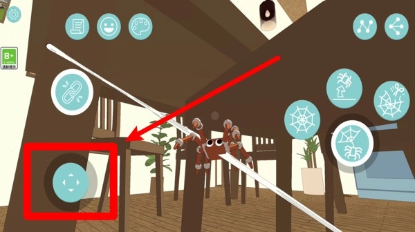 1. 屏幕左下角设有虚拟摇杆按钮,玩家通过此控制器能够操控蜘蛛在场景里自由移动,还能让蜘蛛进行爬墙或者摆荡动作,以此穿梭于各个空间区域。