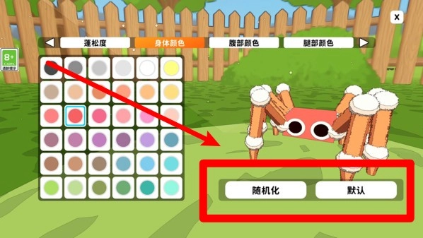 3. 借助外观编辑界面,能够自主调整蜘蛛的身体、腿部和腹部的颜色,还可以一键点击随机化按钮,切换呈现出不同个性风格的外观。