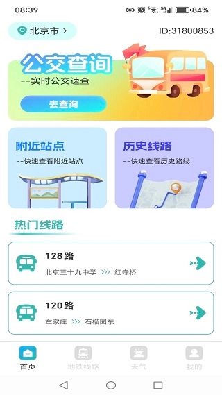 首页提供全面的公交查询服务,附近站点及热门线路都能轻松查询到。