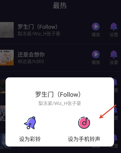 3、你可以在线自由挑选来电秀,还能快速点击完成来电秀到铃声的设置。