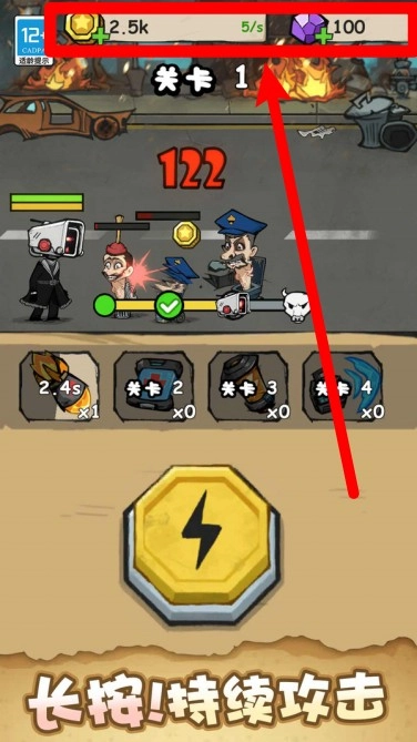1. 画面顶部展示金币、钻石的数量以及资源的获取速率,玩家需要随时留意资源的变动情况,为作战做好准备。