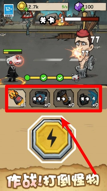 3. 战场资源收集:每次击败怪物都能获取金币和装备,这些资源可用于升级和强化机器人的配置,助力打造更强大的战力,从而更轻松地通过高难度关卡。