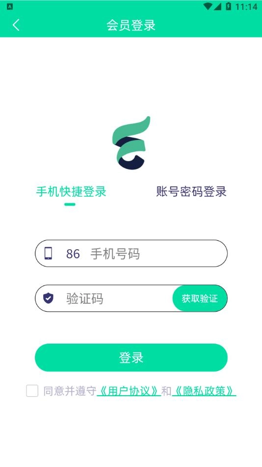 输入手机号验证码登录,也可以选择账号密码登录。