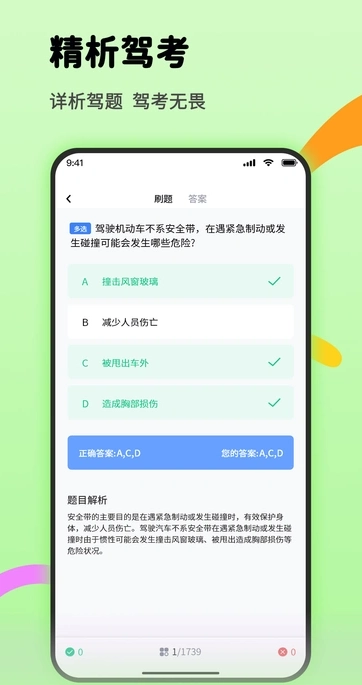 1、题目解析详尽深入,除明确标注正确答案外,还紧密结合实际驾驶场景,对考点展开深度剖析,助力考生理解并强化记忆。