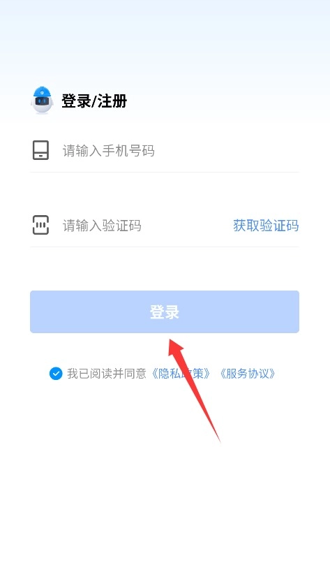 2、在登录页面填写手机号获取验证码,输入验证信息并同意用户条款后完成账号登入。