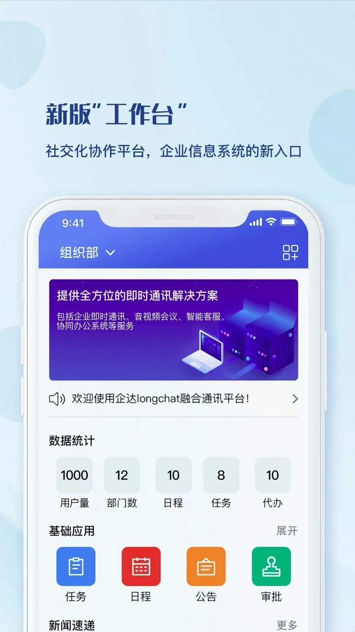 2. 以及进行高效率的即时沟通,提供了流程审批、公文处理、邮件、专栏、公告通知、排班管理等功能模块。