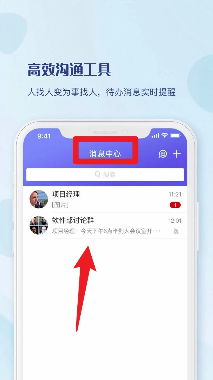 4. 在「消息中心」中与同事沟通交流,系统还会自动推送任务更新与系统通知消息。