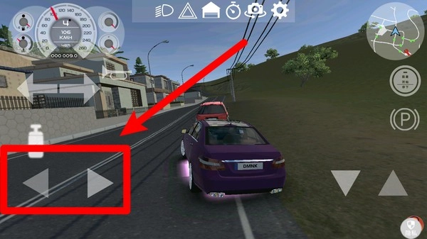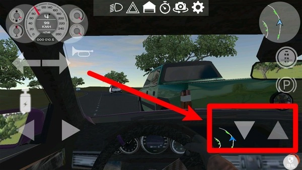3.右下方的上下箭头按钮可以控制车辆前进与倒退,方便在起步、掉头或停车时进行精准操作。