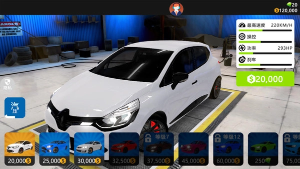 4.自由升级系统:游戏中赚取金币可用于提升赛车性能,包含加速力、操控性、耐撞度等,打造最强竞速车队。