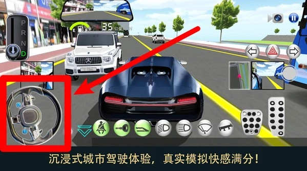 3. 左侧是虚拟方向盘的操控区域,玩家要通过左右滑动来实现精准转向,同时结合倒车镜和前视镜判断方向,从而完成驾驶操作。