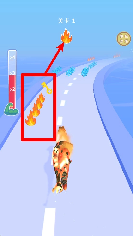 2. 在前进的道路上收集火焰元素能够提高力量等级,当元素积累到满值时会触发恐龙的进化状态,而且不同元素的搭配组合还可以解锁独一无二的属性技能。