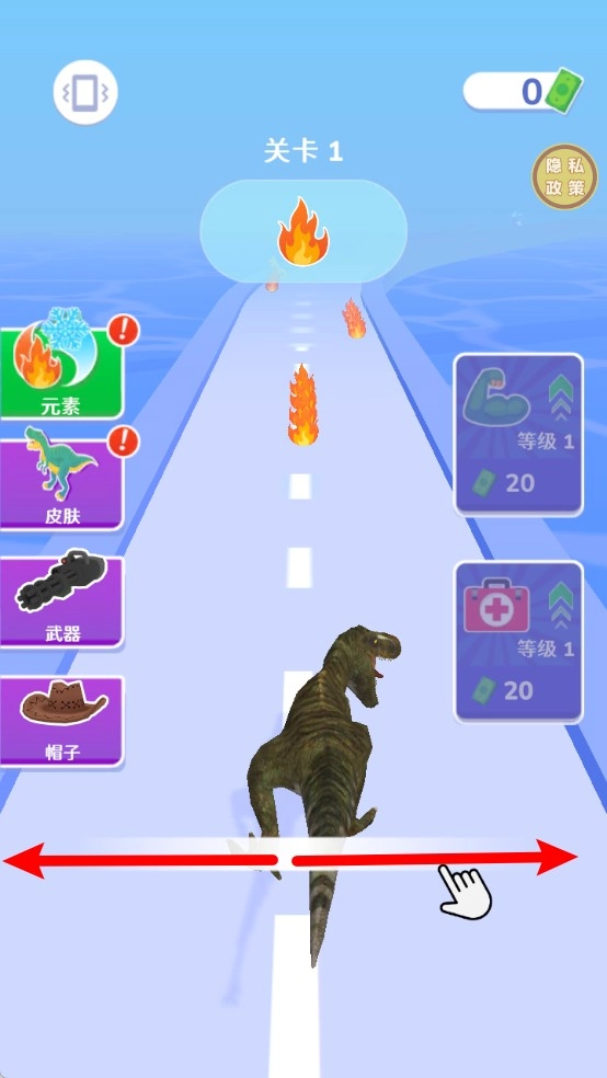 3. 通过左右滑动屏幕来操控恐龙切换跑道,既要避开障碍,又要精准收集元素,保持稳定的操作节奏是恐龙成功进化的关键所在。