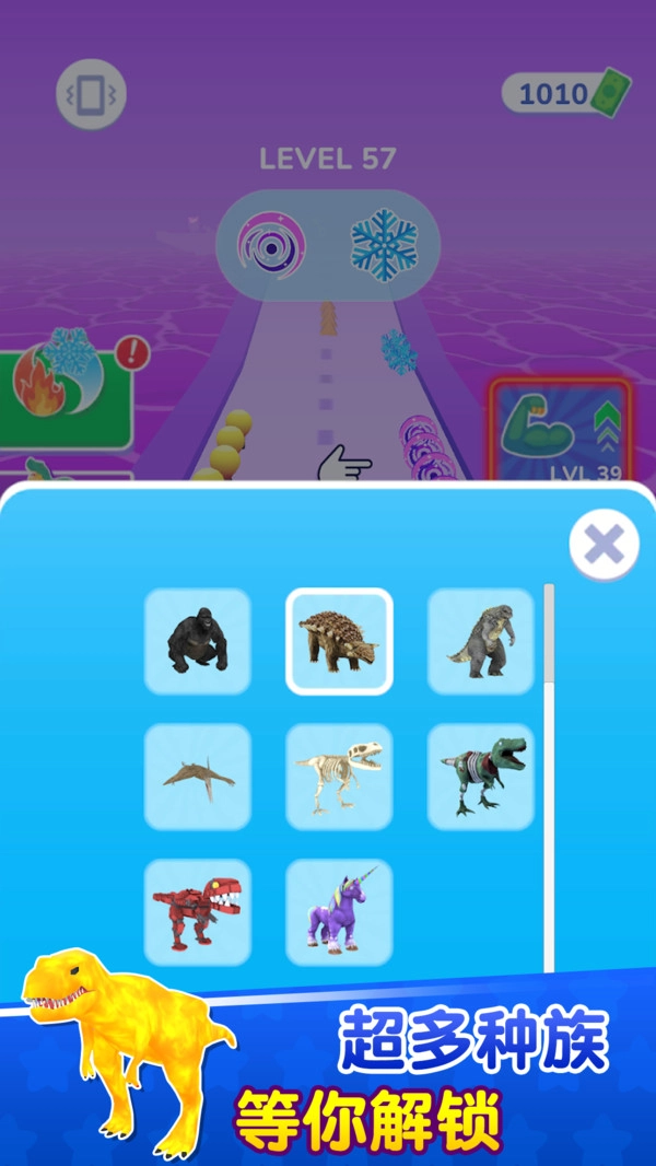 2. 扩充恐龙种类:解锁系统里有各式各样的恐龙形态,每一种都具备独特的技能或冲刺速率,玩家能够通过收集来组建专属于自己的超强史前阵容。
