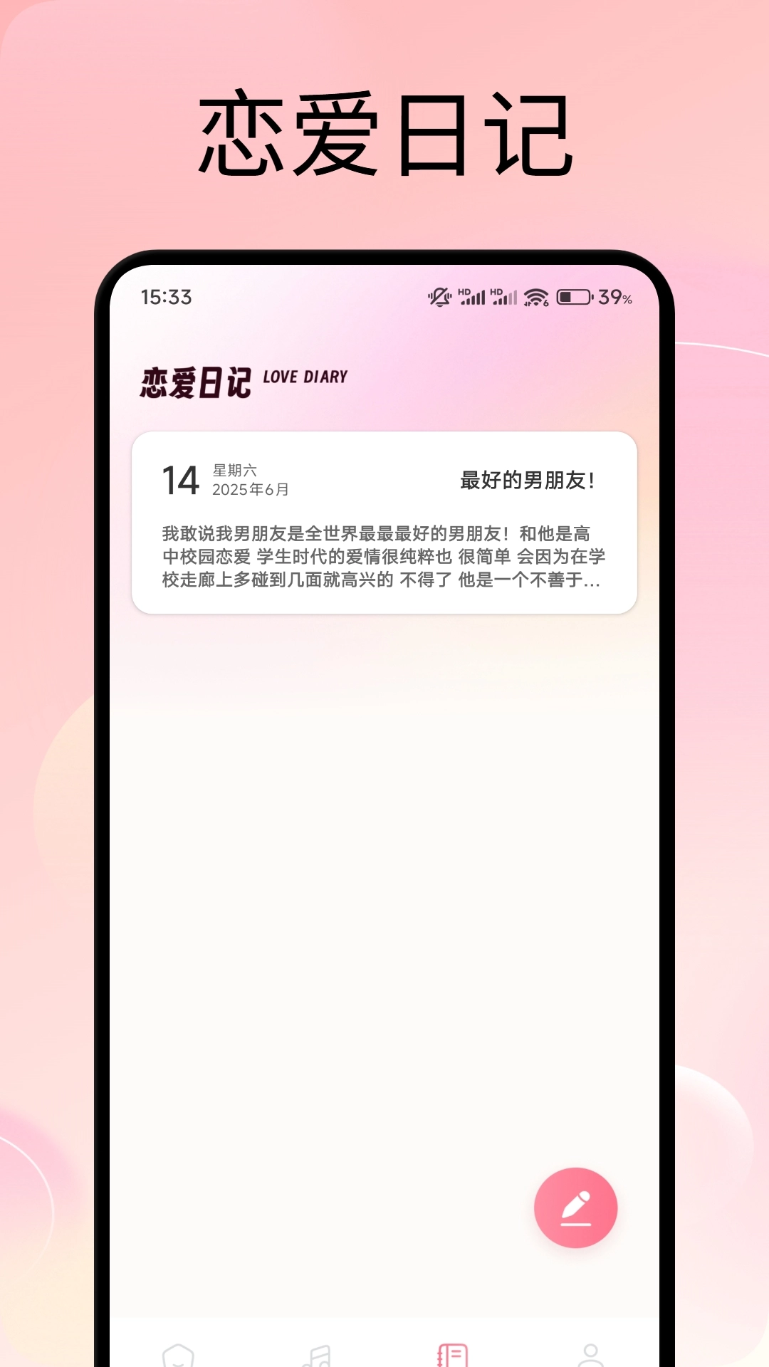 3、恋爱日记功能,让情侣记录点滴,珍藏美好回忆。