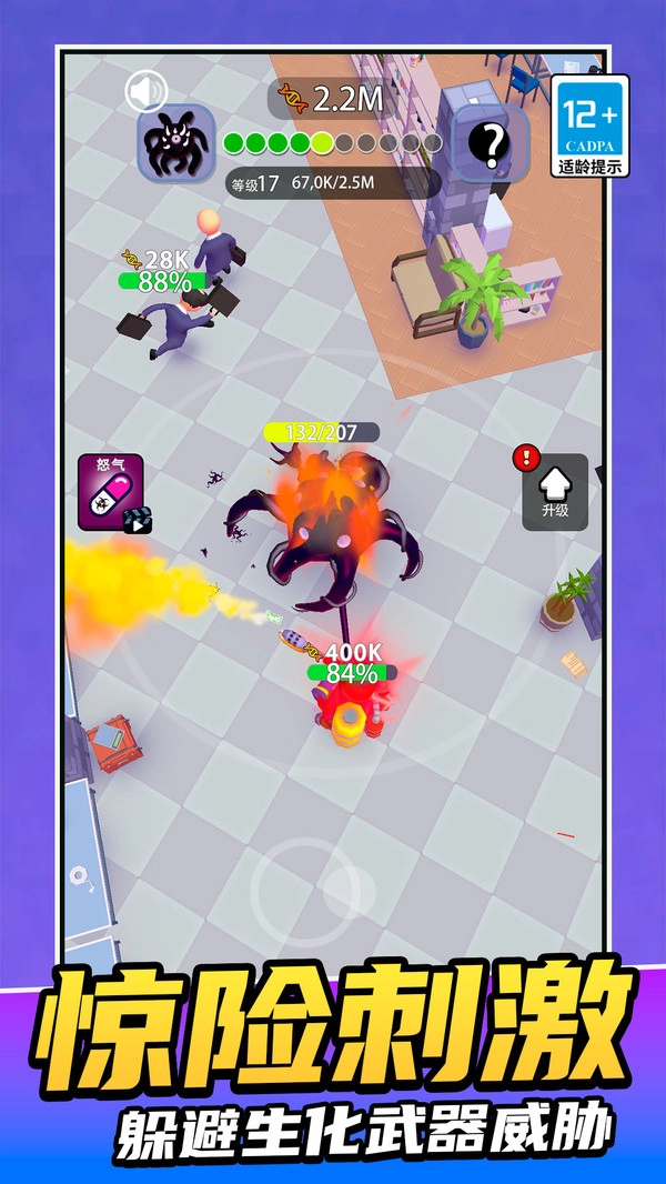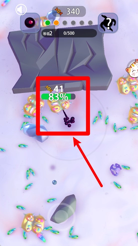 2.战斗能量显示:角色当前DNA能量进度条会实时显示,吞噬敌人越多,进化速度越快越强。