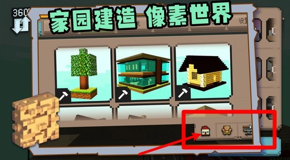 2. 玩家能够在建造界面里挑选不同风格的建筑蓝图,无论是树屋、别墅还是木屋都可以快速搭建,从而自由创造专属于自己的梦想像素家园世界。