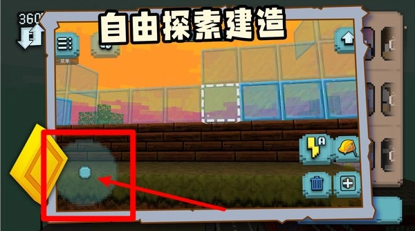 3. 通过屏幕左下角的虚拟方向控制轮盘,你可以自由行走并探索地图,再配合右侧的建造键来操作方块,就能轻松开启像素世界的创意冒险之旅。