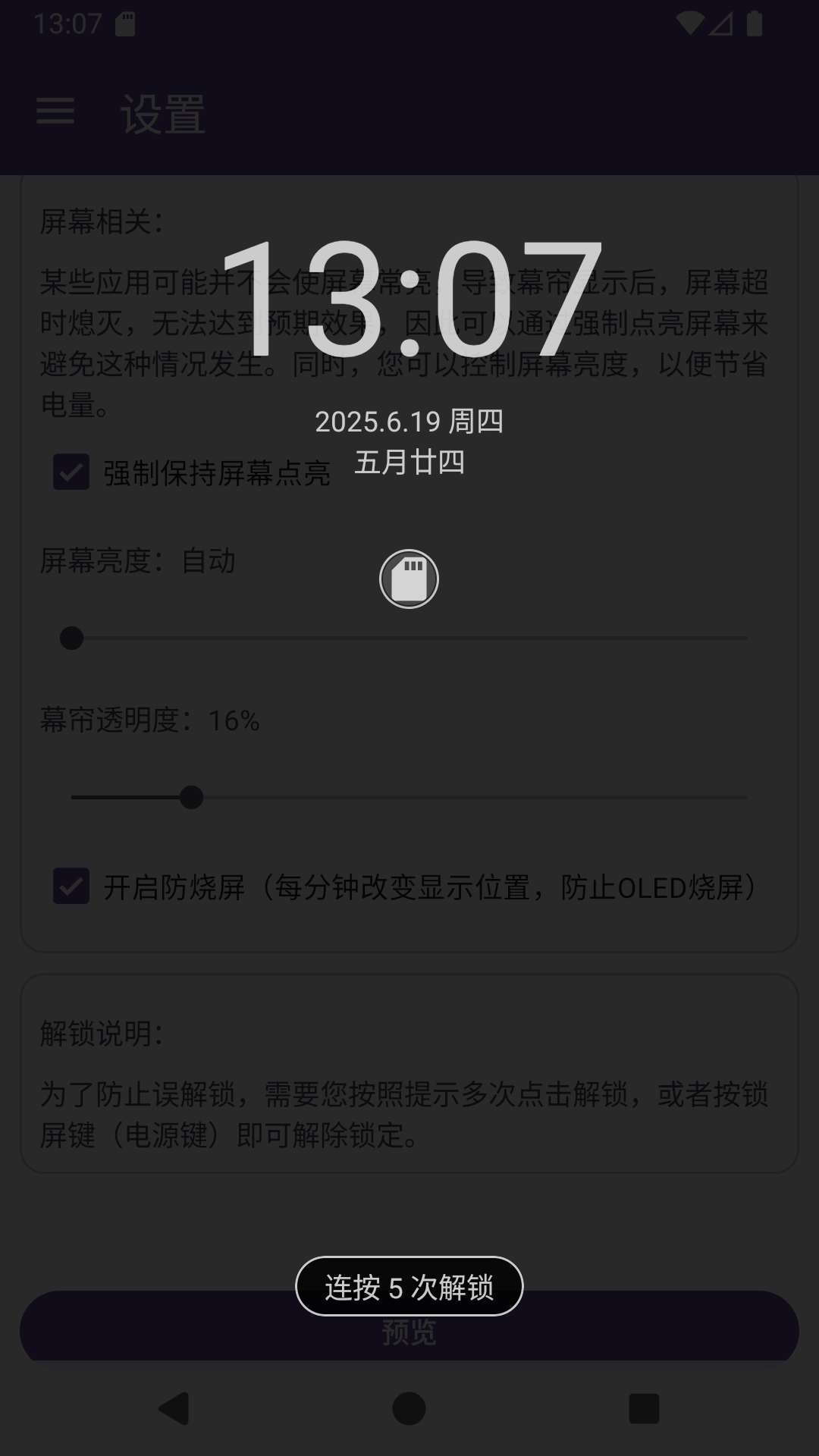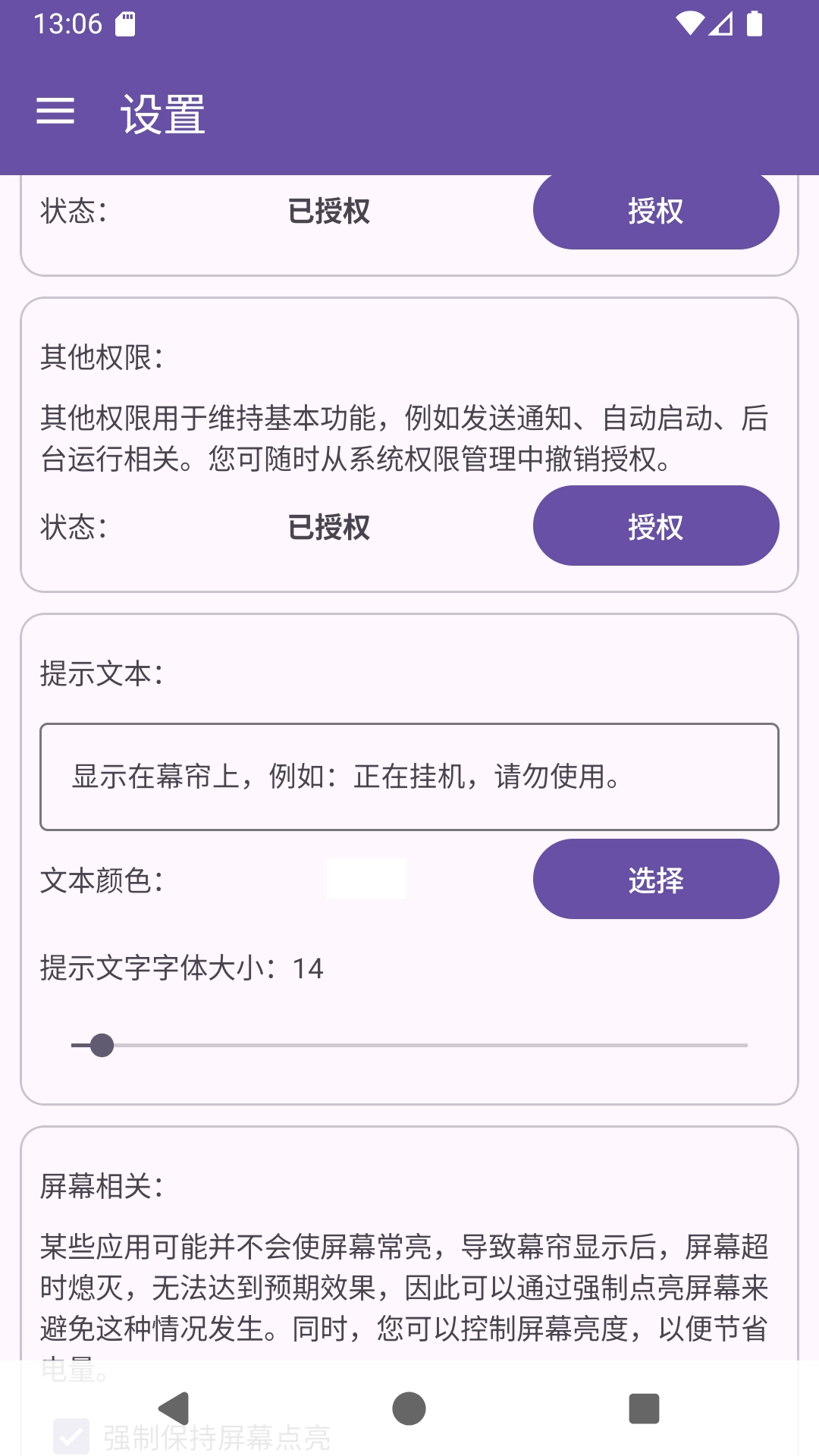 扩展功能 有些幕帘App还整合了更多智能化的特点,例如支持局域网和广域网报警,还有反向控制功能(比如从监控中心对模块进行布防/撤防)。这些扩展功能进一步提高了系统的灵活性和安全性。幕帘是一款借助技术手段实现阻止息屏、防止误触,从而达成前台挂机功能的应用程序。在一些特定场景中,比如手机置于口袋内时,若不锁屏就容易引发各类误触问题,可一旦锁屏,正在运行的游戏或应用又会随之暂停,这给用户带来了不小的困扰。而通过使用幕帘App,您能够让手机模拟出息屏状态,同时确保原本运行中的应用不会暂停,依旧保持持续运行,出色地解决了这类场景下的难题。对于游戏玩家而言,想要挂机却又担心误触操作,您可以通过调节幕帘的透明度,这样既能实时查看游戏画面,又能有效避免误操作,是挂机和应对突发状况的理想辅助工具。