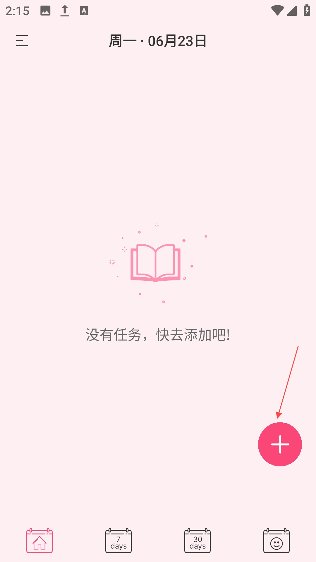 2、点击右下角“+”图标,输入内容,设置时间、提醒、标签等参数,保存即可。