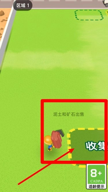 1. 角色进入虚线区域就能完成泥土和矿石的出售操作,出售后可马上获得金币,用于进行升级与扩建。