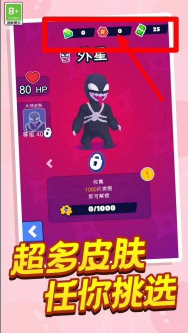1. 在角色皮肤系统里,玩家能够收集碎片来解锁新的外观;系统上方会展示玩家持有的货币种类及数量,方便玩家进行皮肤或资源的兑换操作。