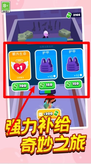 补给商店里有额外的生命与护甲装备可供选购,玩家只需花费绿色钞票就能将其收入囊中,这些装备能为后续关卡的战斗提供更坚实的生存保障。