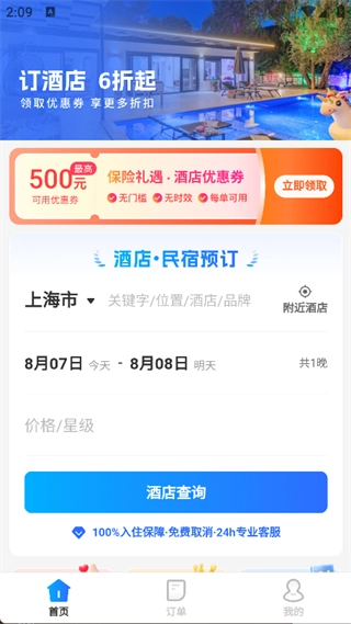 在首页就能够看到酒店民宿预订页面,你可以输入地址和日期,进而开始搜索;