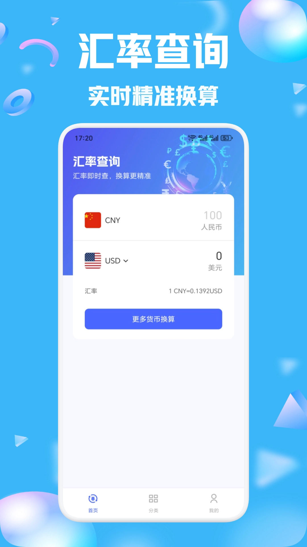 2、支持实时汇率查询,可精准完成人民币与美元等货币的换算。