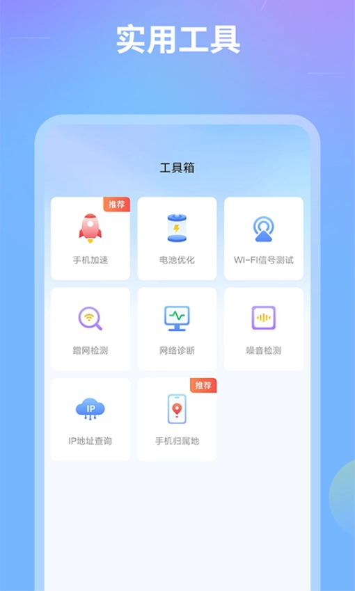 2. 提供多种测试工具,可以对网络、噪音、WiFi信号等进行快速的测试;