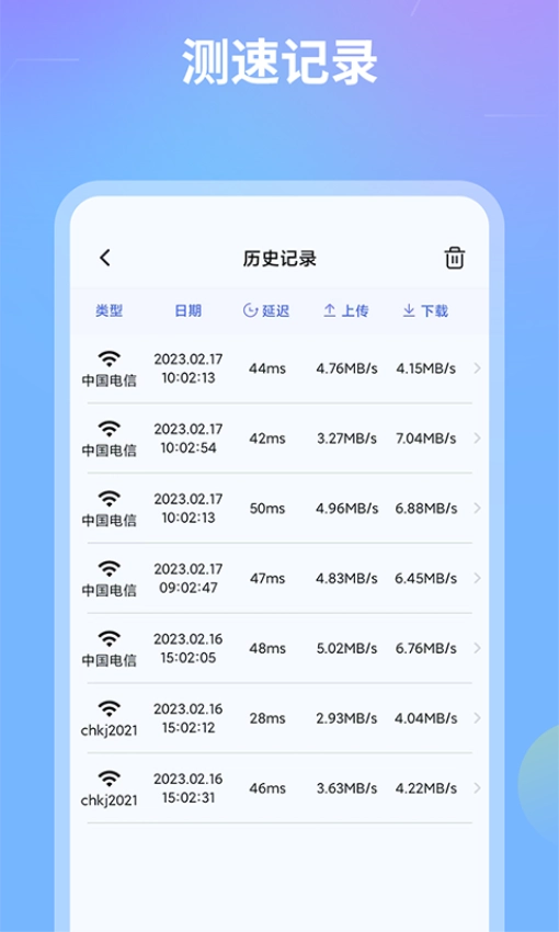 1. 历史记录:支持查看历史测速记录,了解网络速度变化趋势,非常的直观;