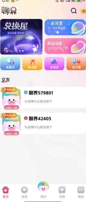 聊界派对是一款支持真人在线互动的派对交友软件,每天都有许多同城用户汇聚于此。你可以随时关注热门聊天话题,及时加入在线互动交流;无论身处何地,都能通过它高效匹配交友对象,大大提升了交友的便捷性。