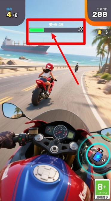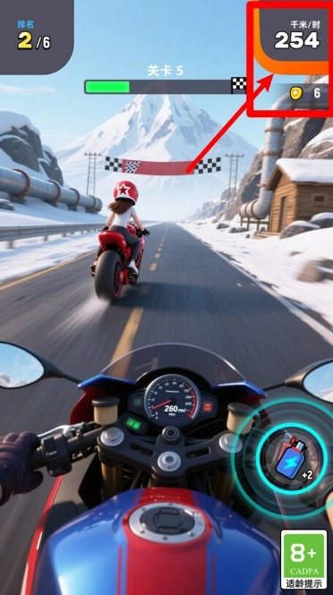 1.速度显示:屏幕右上角会呈现摩托车当前的实时速度,单位是千米每小时,能助力玩家准确把控行驶节奏与赛道状况。