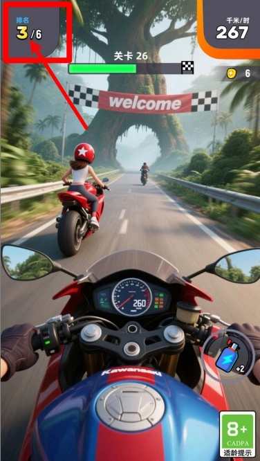3. 当前排名:在界面的左上角,会清晰地展示出你在比赛过程中的实时名次。这里的数字越小,就意味着你的排名越靠前,以此来激励玩家们加快速度,全力冲刺。