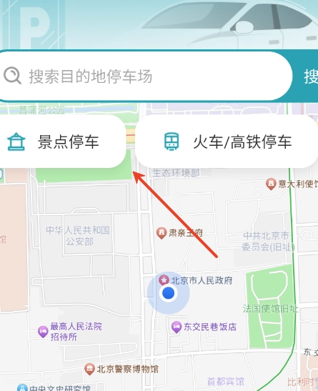 2、若需查找特定区域的车位,可使用搜索栏并输入目的地。