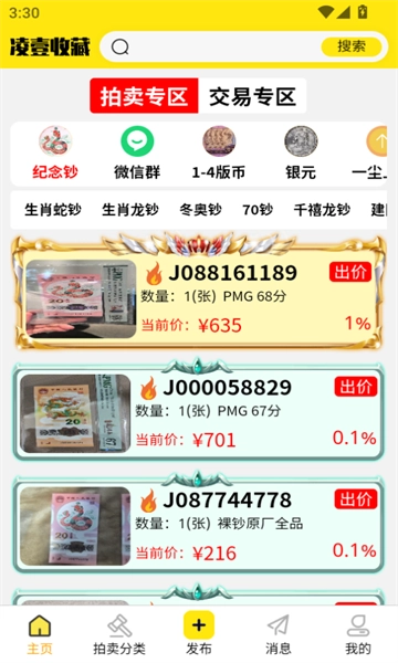 3、平台为用户设立专属的纪念币与纪念钞拍卖专区,用户可通过参与拍卖活动获取珍稀的纪念币和纪念钞。