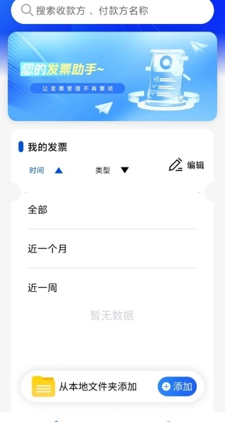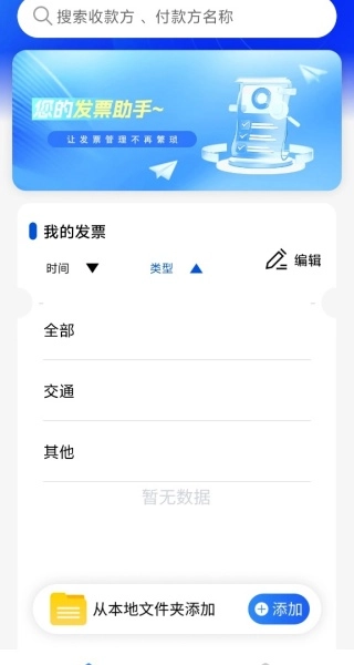 电子发票免费助手借助简洁的操作步骤与完善的功能配置,助力用户便捷处理发票添加、查看、分类等各类需求,无论是日常使用还是工作场景都能适用。该助手具备本地发票添加功能,用户无需繁琐操作,直接从本地文件夹导入电子发票即可,轻松完成发票的收集与管理,让发票整理工作更加高效便捷。