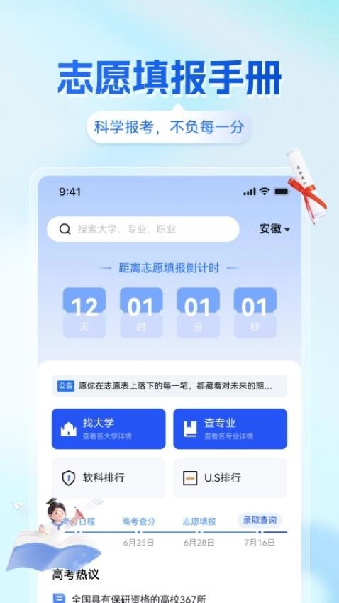 3. 实时自动倒计时距离填报志愿的时间,便于用户知晓并提前做好填报计划。