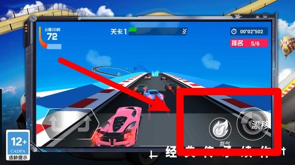 2.加速漂移:通过右侧的“气氛”和“漂移”按钮,合理把握加速与转向时机,在弯道或直道中迅速拉开与对手的差距。