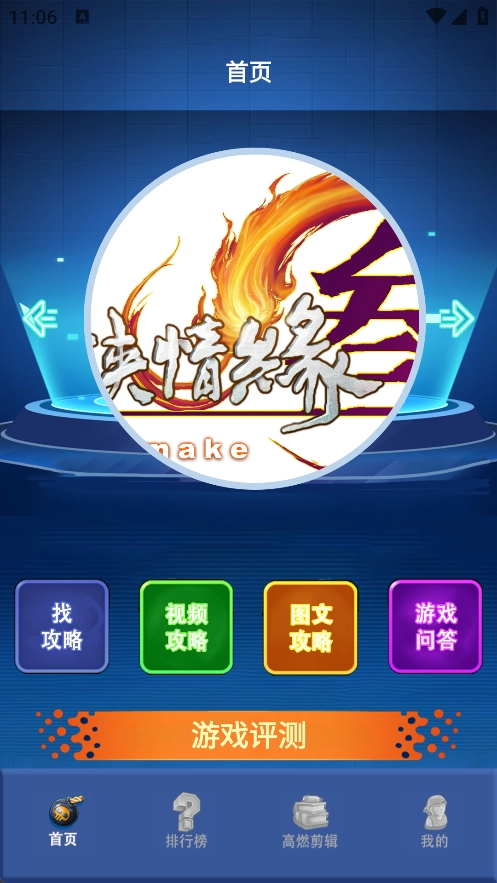 首页设有找攻略、视频攻略、图文攻略、游戏问答等版块,此外还包含游戏评测内容。