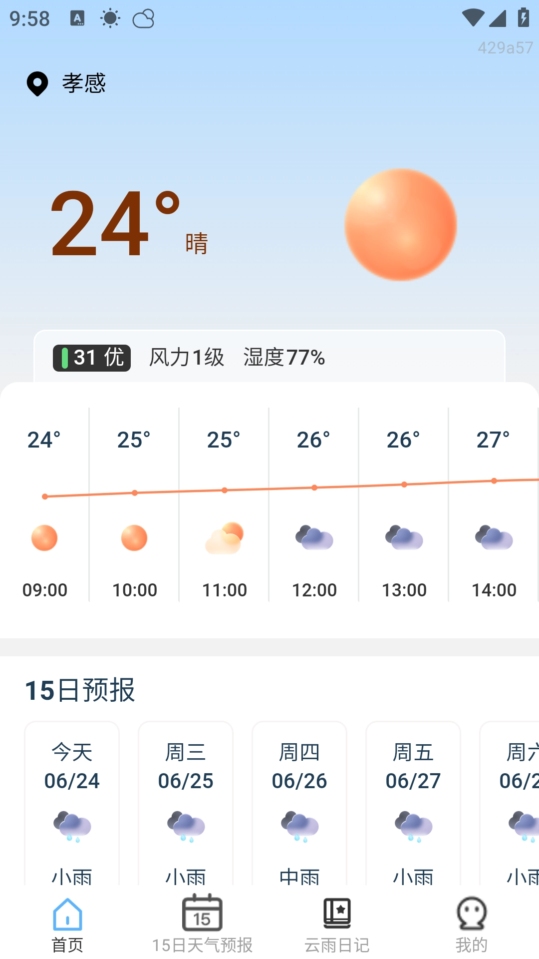 3、下方导航栏中还可以查看15日天气预报。