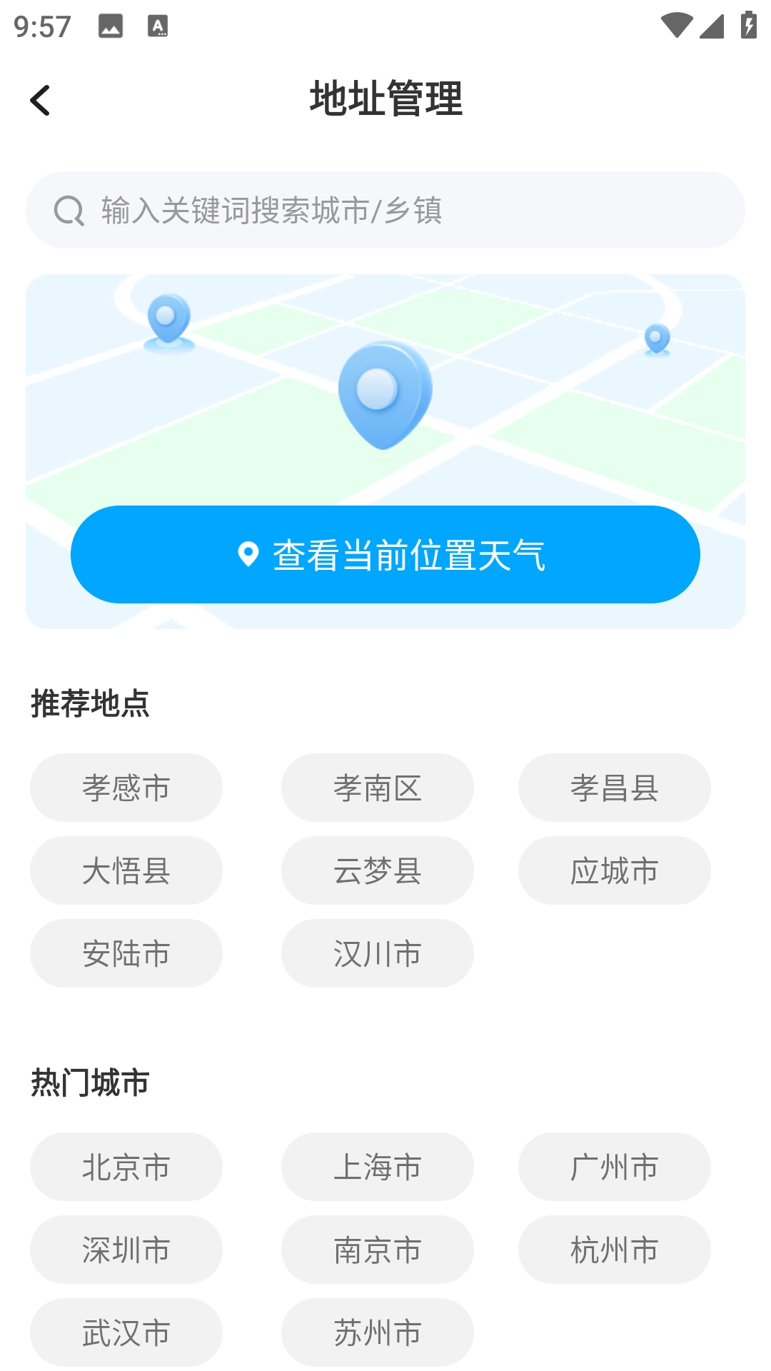 1、兼具智能定位与手动添加功能,可智能识别用户当前所在位置,并自动同步更新当地实时天气状况;