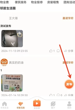 用户若想进入“邻里互助”社区,能够在线浏览该社区的动态信息。