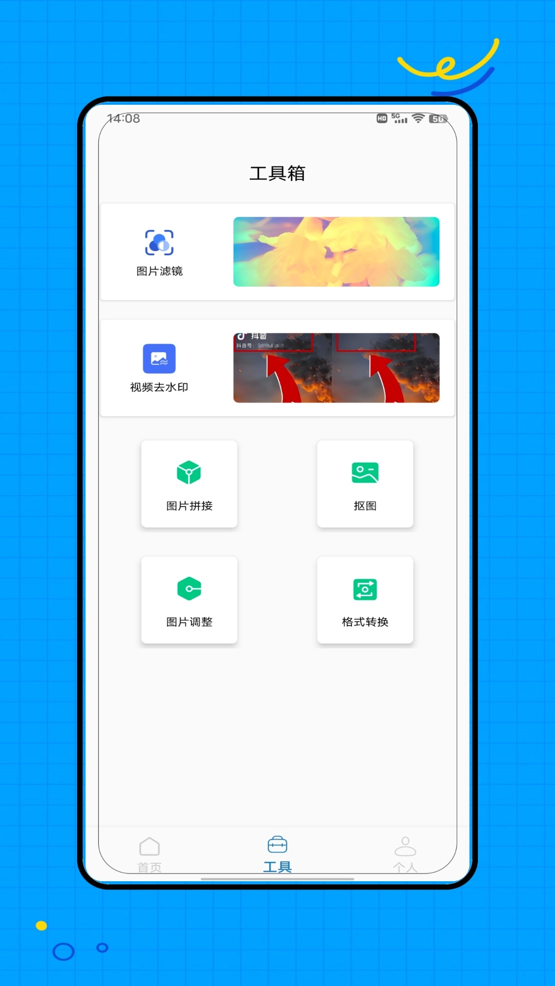 2、整合了照片美化、去污擦除、尺寸裁剪、视频去水印、滤镜添加、拼接抠图等多种功能。