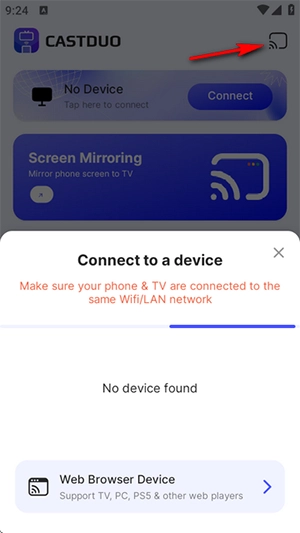 CastDuo是一款手机投屏工具,它有着简洁明快的界面,而且使用起来完全免费。通过这款工具,把手机内容投屏到电视上的操作非常简单。它能够投送手机里的照片、视频、网页和音乐,还可以观看IPTV直播电视,整个操作过程难度不高。