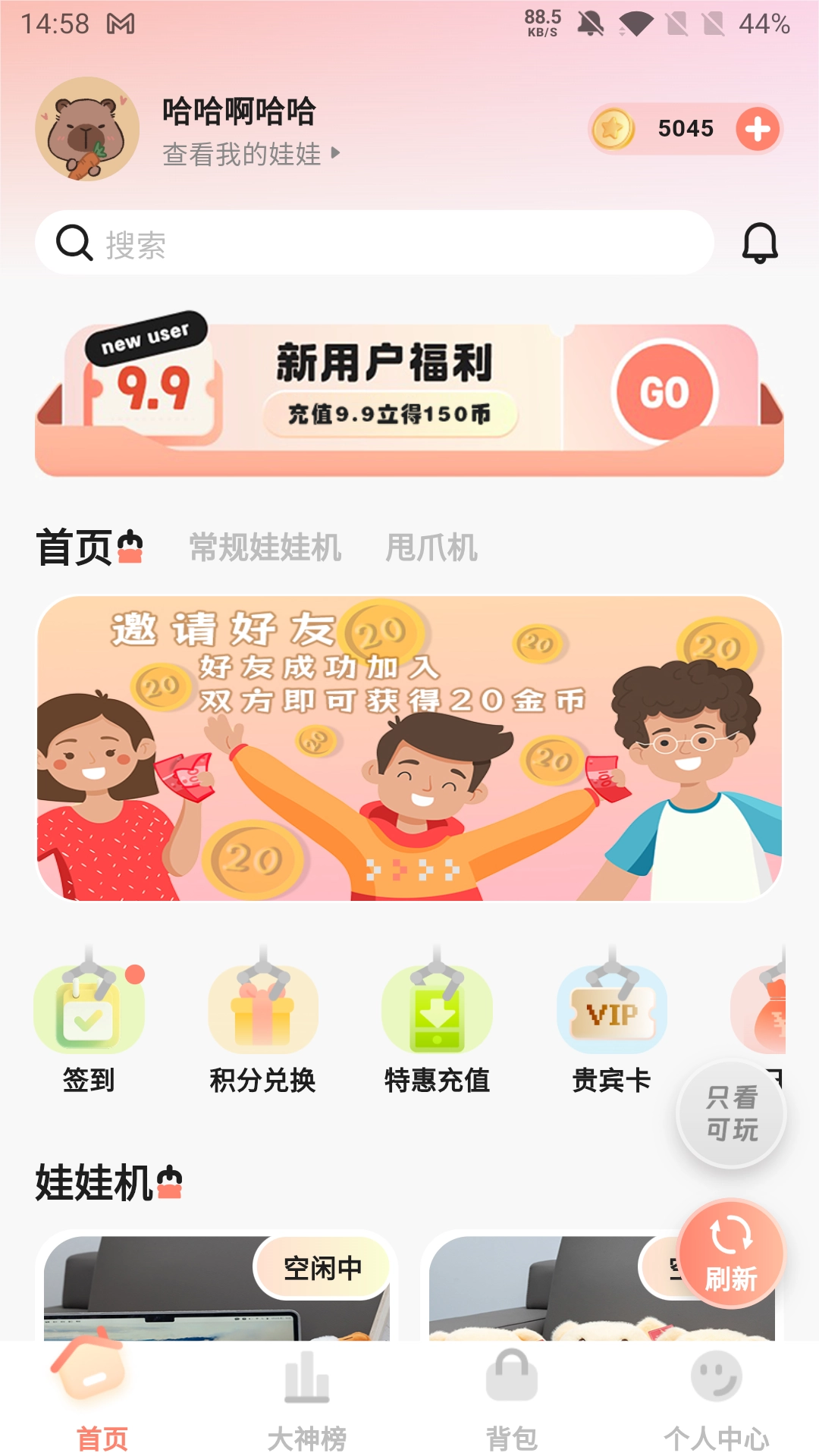 3、通过设置丰富多彩的活动与福利,有效提升用户粘性,让抓娃娃的乐趣不断升级。