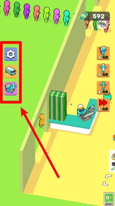3.功能按钮:左侧有三个功能按键,包括设置、车辆和员工管理,玩家可快速调整餐厅策略。